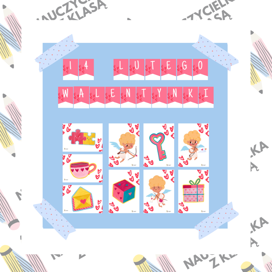 - 9 walentynkowych ilustracji,